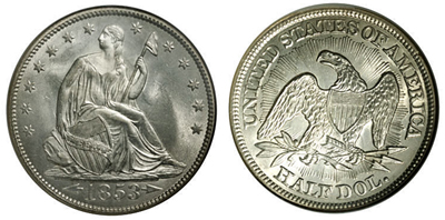 The rays were removed from the half dollar and quarter at the end of production in 1853, but the arrows lingered for two more years, probably to reinforce awareness of the change. In 1856, with the new weight solidly established, the arrows too were removed. The pieces with both arrows and rays, being minted only in 1853, are thus one-year type coins.