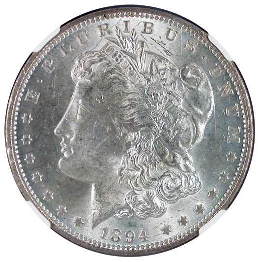 This is a frosty white 1894P dollar with very clean surfaces and a great look.