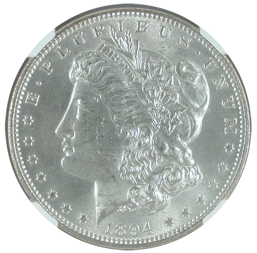 Here is another frosty white 1894P Dollar with satiny luster and clean surfaces.
