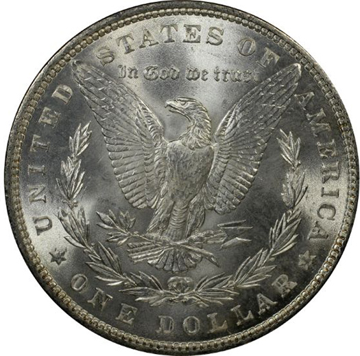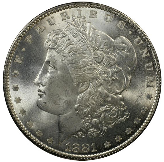 White and fully struck with soft satiny luster and super clean surfaces PQ .