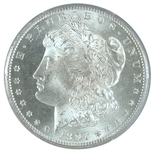 White and frosty with super clean surfaces and cheek on liberty. Much nicer than they usually come in this grade. PQ