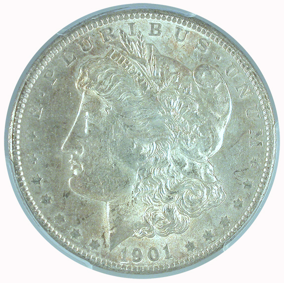 This 1901 Dollar is lightly toned with good luster over original surfaces. CAC stickered for premium quality.