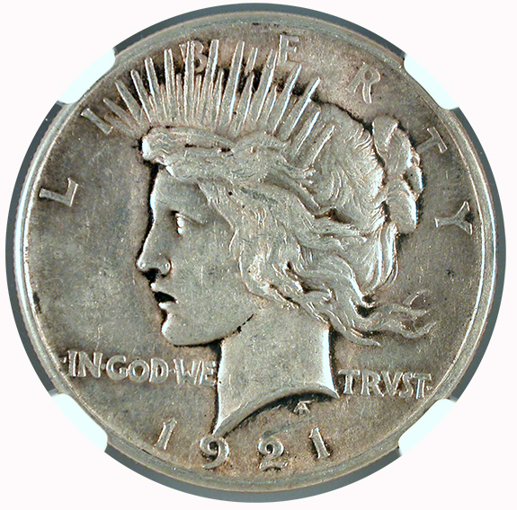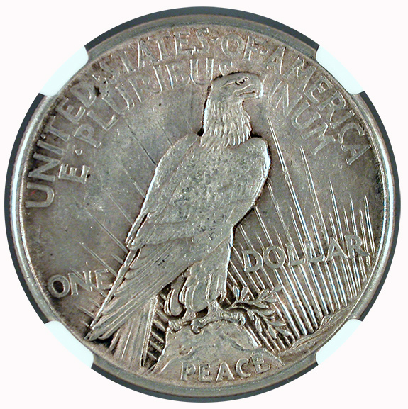 1921 S$1 PEACE, HIGH RELIEF NGC AU 58