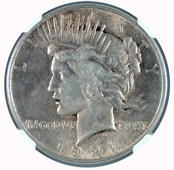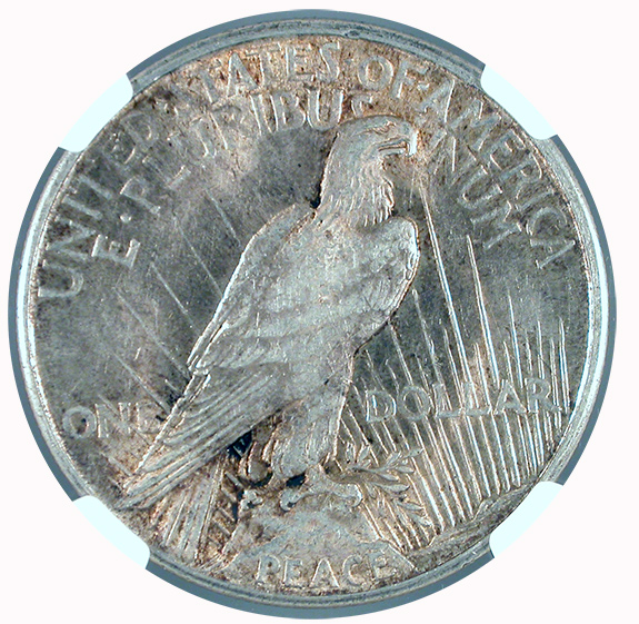 1921 S$1 PEACE, HIGH RELIEF NGC AU 58